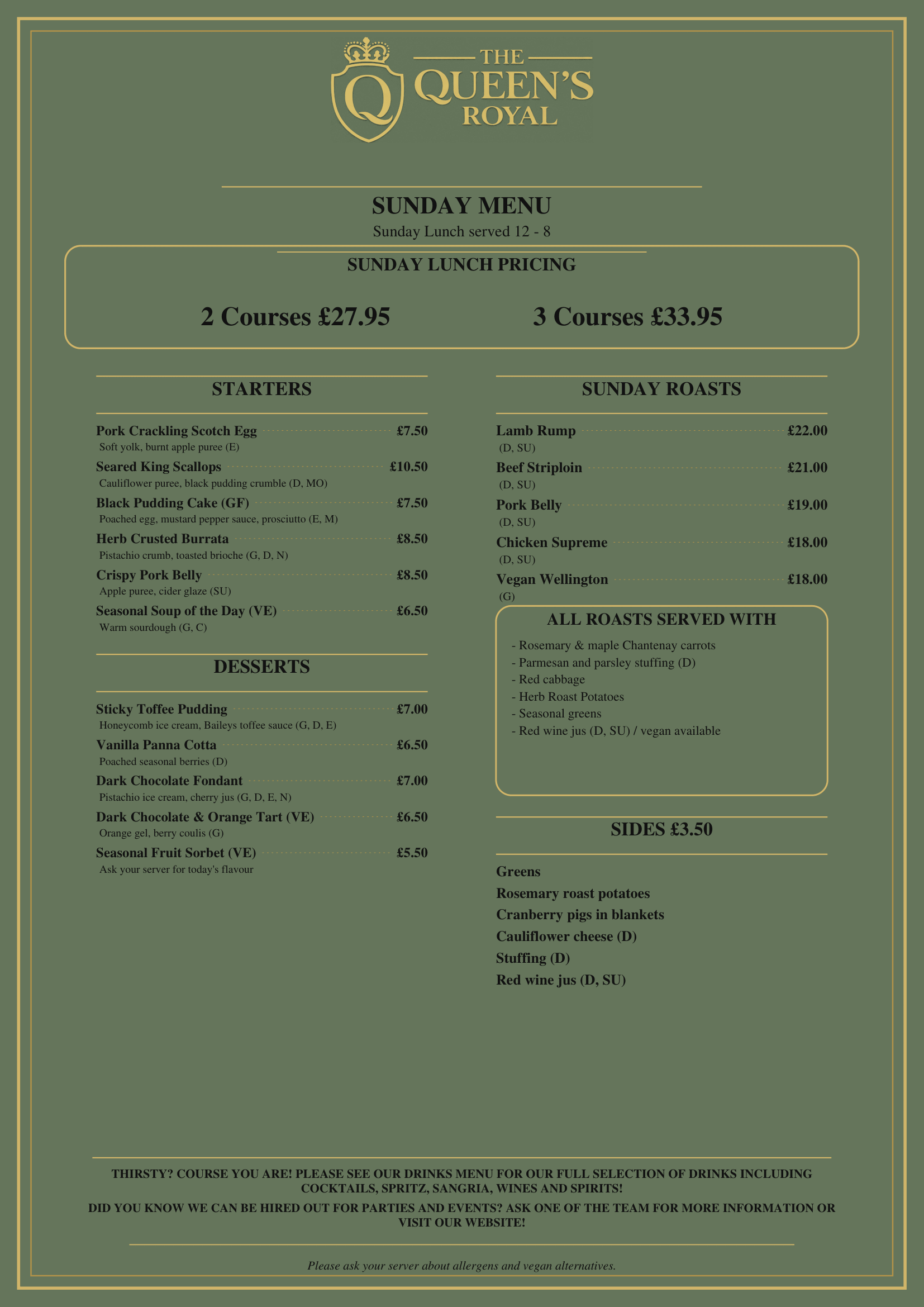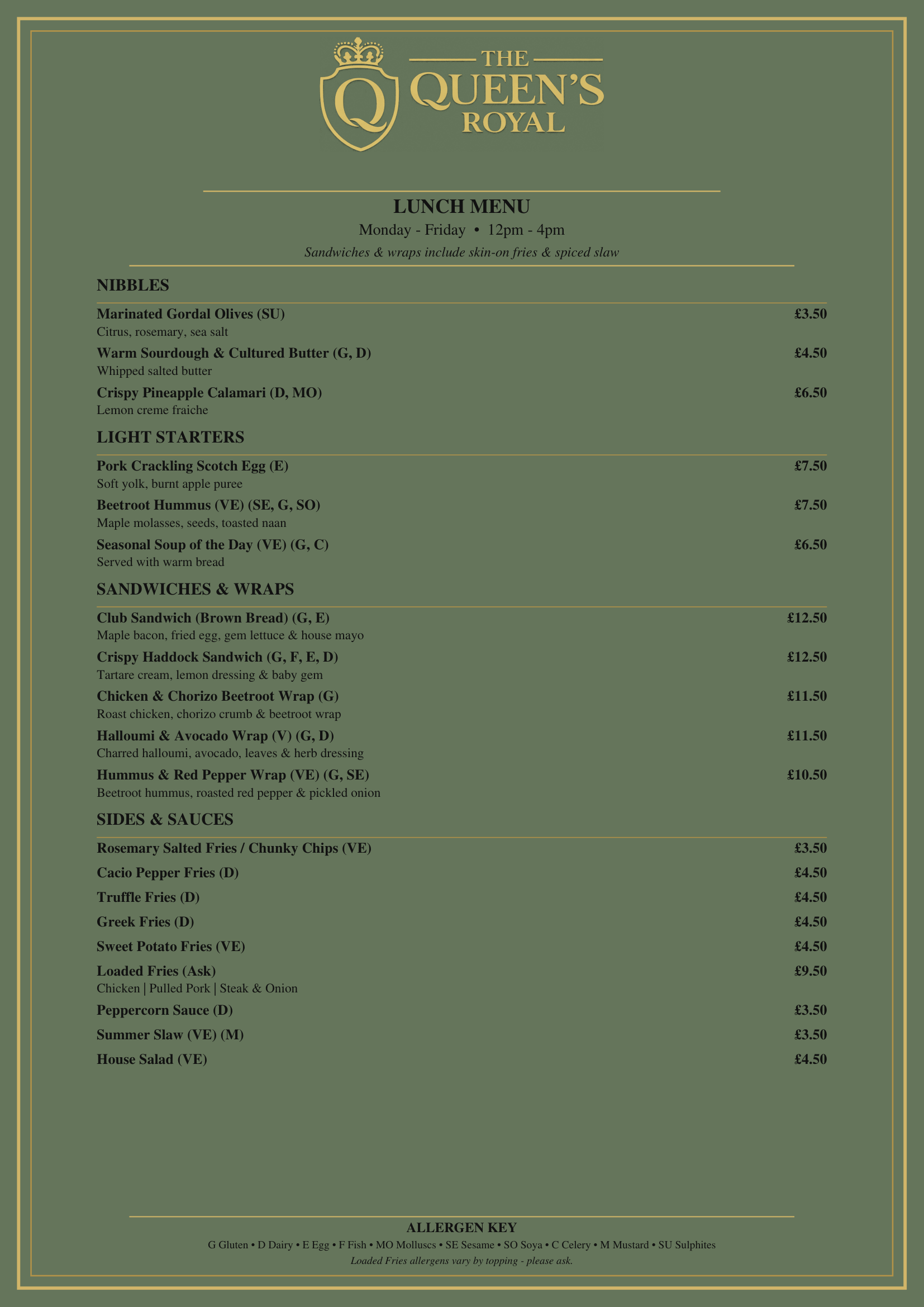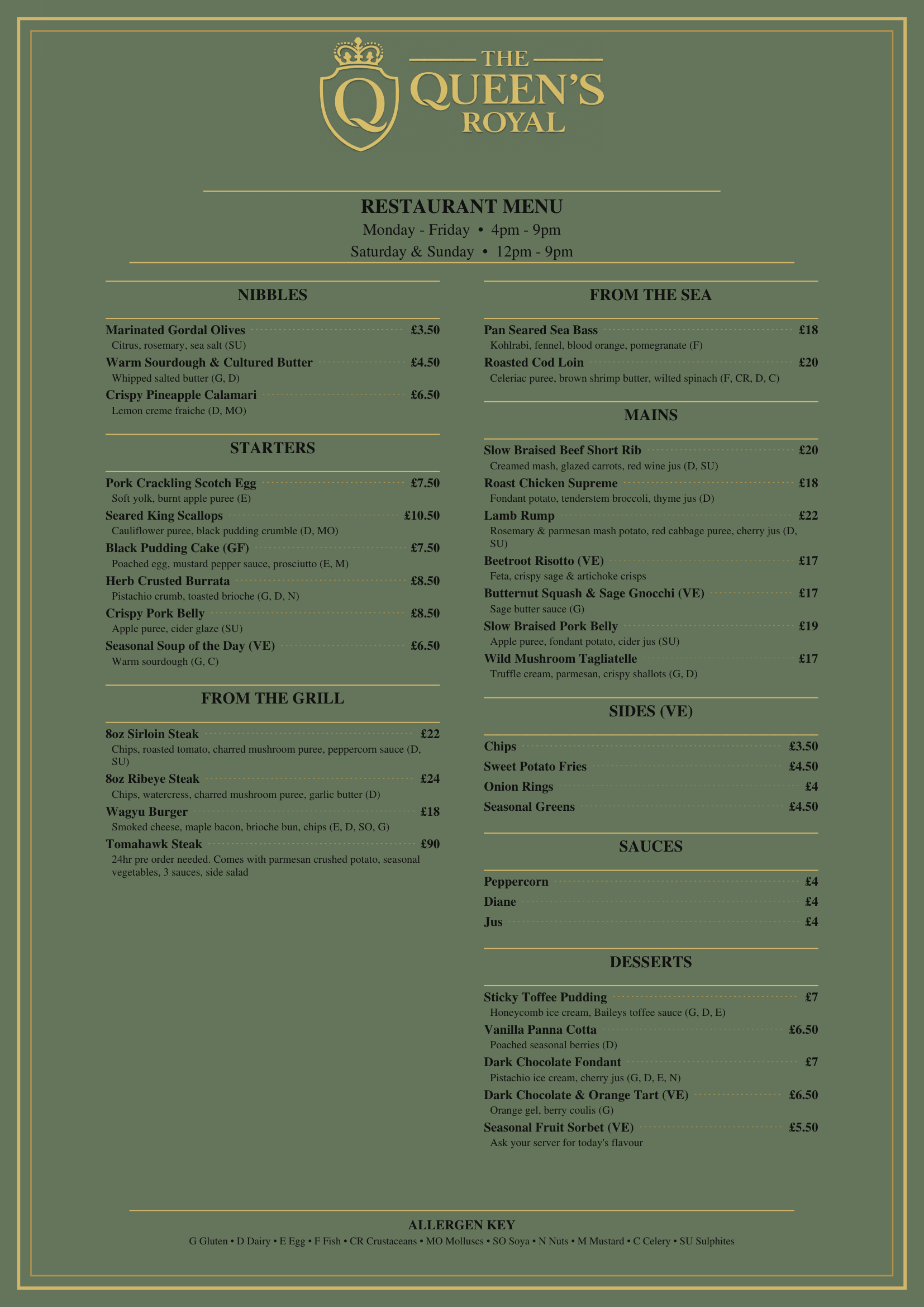 Welcome to the dining experience at The Queens Royal — where modern British cooking meets carefully sourced local ingredients. Our chefs craft every dish with creativity and attention to detail, bringing you flavours that feel both familiar and elevated.